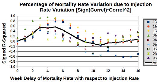 If (BIG IF, I hope) there is ever again a large scale worldwide injection program, the rate of injection should be mandated to be modulated at about 3 different frequencies to be able to easily detect the positive (or negative) effects of the injections using synchronous detections techniques that I have used here using random variations5.